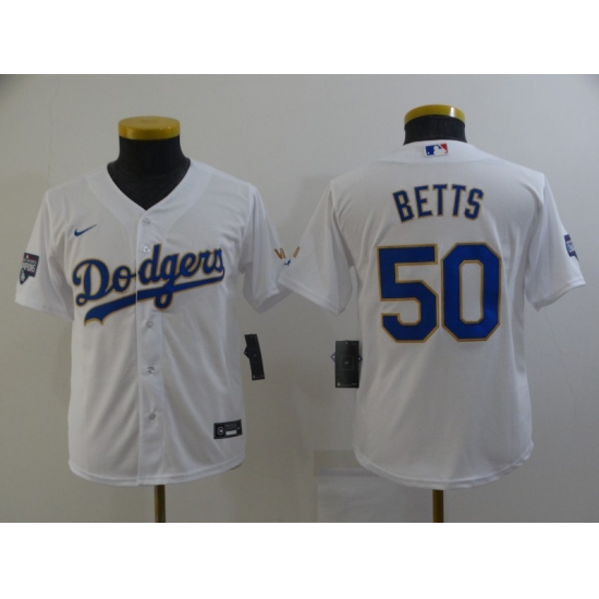 Youth Nike Los Angeles Dodgers #50 Mookie Betts White Series Champions Authentic Jersey