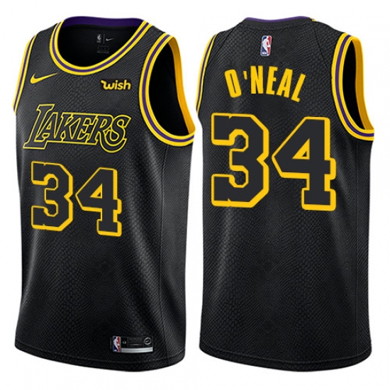 >Youth Nike Los Angeles Lakers #34 Shaquille O'Neal Swingman Black NBA Jersey - City Edition