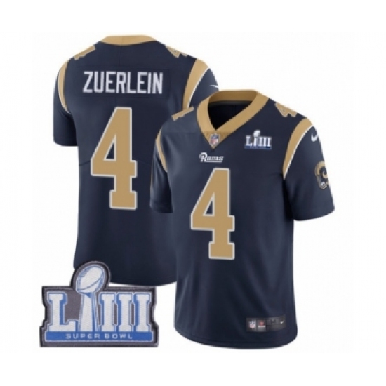 Youth Nike Los Angeles Rams #4 Greg Zuerlein Navy Blue Team Color Vapor Untouchable Limited Player Super Bowl LIII Bound NFL Jersey