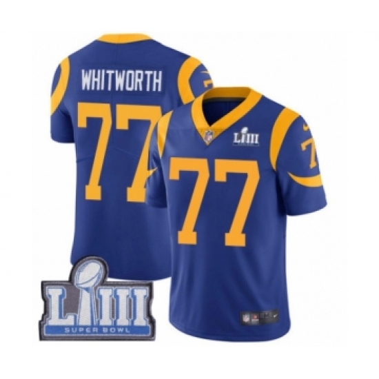 Youth Nike Los Angeles Rams #77 Andrew Whitworth Royal Blue Alternate Vapor Untouchable Limited Player Super Bowl LIII Bound NFL Jersey