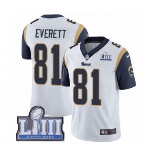 Men's Nike Los Angeles Rams #81 Gerald Everett White Vapor Untouchable Limited Player Super Bowl LIII Bound NFL Jersey