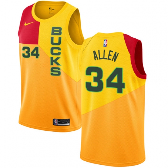 >Youth Nike Milwaukee Bucks #34 Ray Allen Swingman Yellow NBA Jersey - City Edition