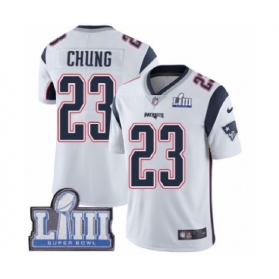 Youth Nike New England Patriots #23 Patrick Chung White Vapor Untouchable Limited Player Super Bowl LIII Bound NFL Jersey