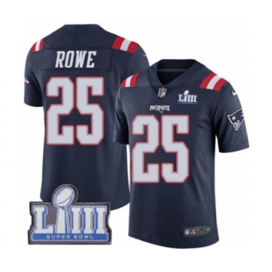 Youth Nike New England Patriots #25 Eric Rowe Limited Navy Blue Rush Vapor Untouchable Super Bowl LIII Bound NFL Jersey