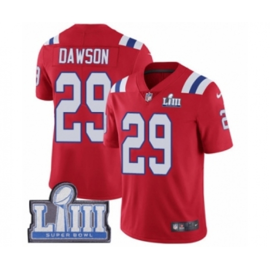 Men's Nike New England Patriots #29 Duke Dawson Red Alternate Vapor Untouchable Limited Player Super Bowl LIII Bound NFL Jersey