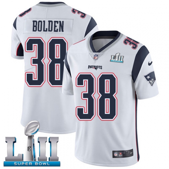 Home>NFL>New England Patriots>Brandon Bolden>Youth Nike New England Patriots #38 Brandon Bolden White Vapor Untouchable Limited Player Super Bowl LII NFL Jersey