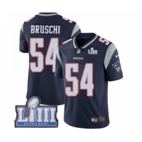 Youth Nike New England Patriots #54 Tedy Bruschi Navy Blue Team Color Vapor Untouchable Limited Player Super Bowl LIII Bound NFL Jersey