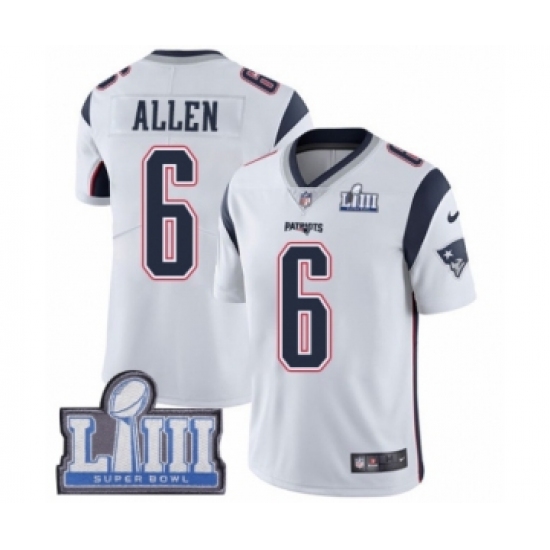 Youth Nike New England Patriots #6 Ryan Allen White Vapor Untouchable Limited Player Super Bowl LIII Bound NFL Jersey