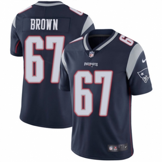 Men's Nike New England Patriots #67 Trent Brown Navy Blue Team Color Vapor Untouchable Limited Player NFL Jersey