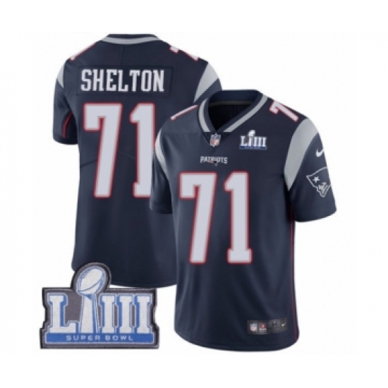 Youth Nike New England Patriots #71 Danny Shelton Navy Blue Team Color Vapor Untouchable Limited Player Super Bowl LIII Bound NFL Jersey