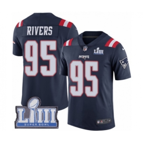 Youth Nike New England Patriots #95 Derek Rivers Limited Navy Blue Rush Vapor Untouchable Super Bowl LIII Bound NFL Jersey