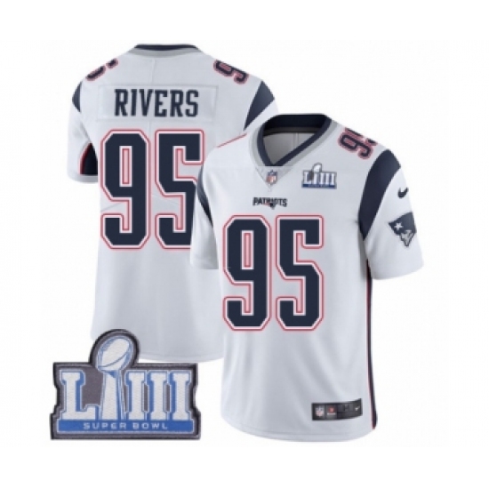 Youth Nike New England Patriots #95 Derek Rivers White Vapor Untouchable Limited Player Super Bowl LIII Bound NFL Jersey