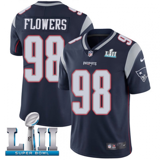 Home>NFL>New England Patriots>Trey Flowers>Youth Nike New England Patriots #98 Trey Flowers Navy Blue Team Color Vapor Untouchable Limited Player Super Bowl LII NFL Jersey