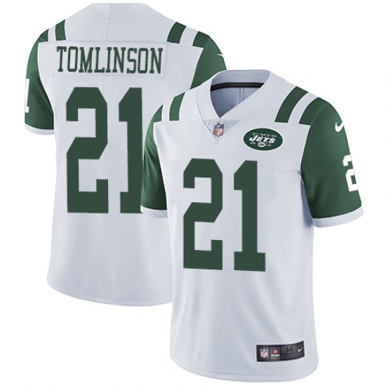 Home>NFL>New York Jets>LaDainian Tomlinson>Youth Nike New York Jets #21 LaDainian Tomlinson White Vapor Untouchable Limited Player NFL Jersey