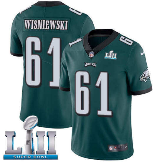 Home>NFL>Philadelphia Eagles>Stefen Wisniewski>Youth Nike Philadelphia Eagles #61 Stefen Wisniewski Midnight Green Team Color Vapor Untouchable Limited Player Super Bowl LII NFL Jersey