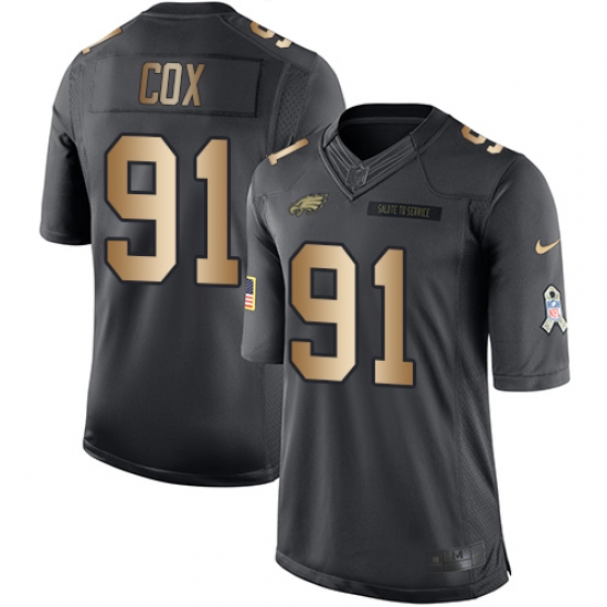Home>NFL>Philadelphia Eagles>Fletcher Cox>Youth Nike Philadelphia Eagles #91 Fletcher Cox Limited Black/Gold Salute to Service NFL Jersey