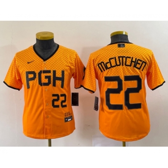 Youth Nike Pittsburgh Pirates #22 Andrew McCutchen Yellow 2023 City Connect Stitched Jersey1