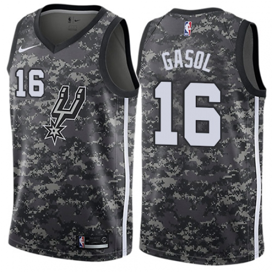 Home>NBA>San Antonio Spurs>Pau Gasol>Youth Nike San Antonio Spurs #16 Pau Gasol Swingman Camo NBA Jersey - City Edition