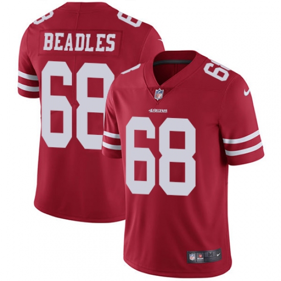 Home>NFL>San Francisco 49ers>Zane Beadles>Youth Nike San Francisco 49ers #68 Zane Beadles Red Team Color Vapor Untouchable Limited Player NFL Jersey