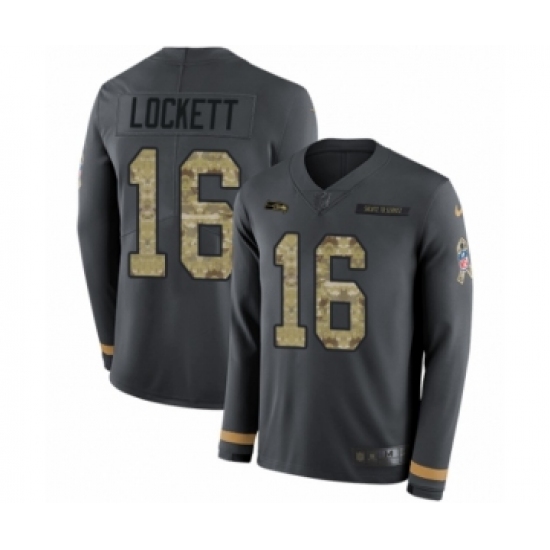 >Youth Nike Seattle Seahawks #16 Tyler Lockett Limited Black Salute to Service Therma Long Sleeve NFL Jersey