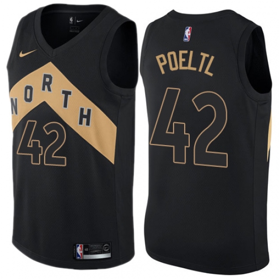 Home>NBA>Toronto Raptors>Jakob Poeltl>Youth Nike Toronto Raptors #42 Jakob Poeltl Swingman Black NBA Jersey - City Edition