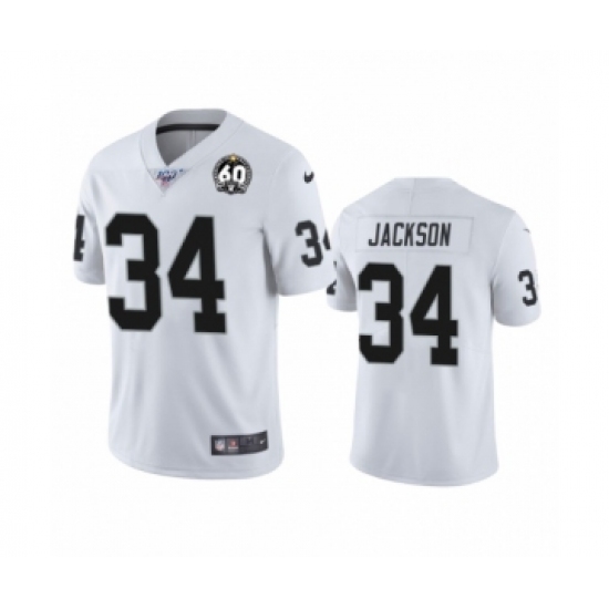 >Youth Oakland Raiders #34 Bo Jackson White 60th Anniversary Vapor Untouchable Limited Player 100th Season Football Jersey