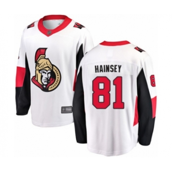 Youth Ottawa Senators #81 Ron Hainsey Fanatics Branded White Away Breakaway Hockey Jersey