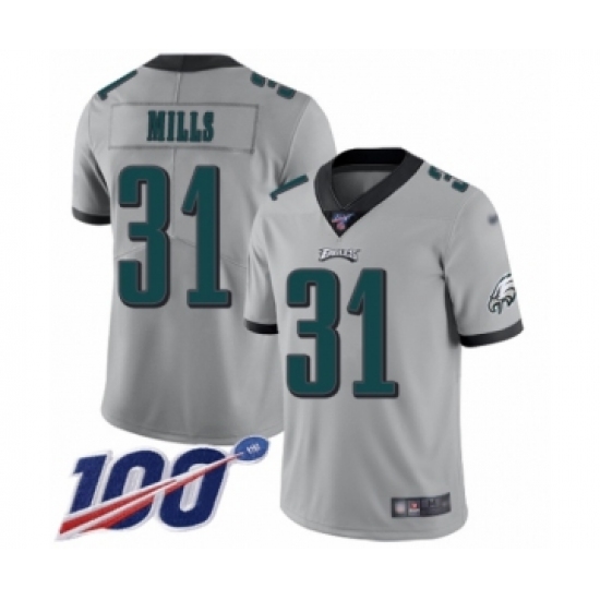Men's Philadelphia Eagles #31 Jalen Mills Limited Silver Inverted Legend 100th Season Football Jersey