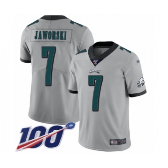 Youth Philadelphia Eagles #7 Ron Jaworski Limited Silver Inverted Legend 100th Season Football Jersey