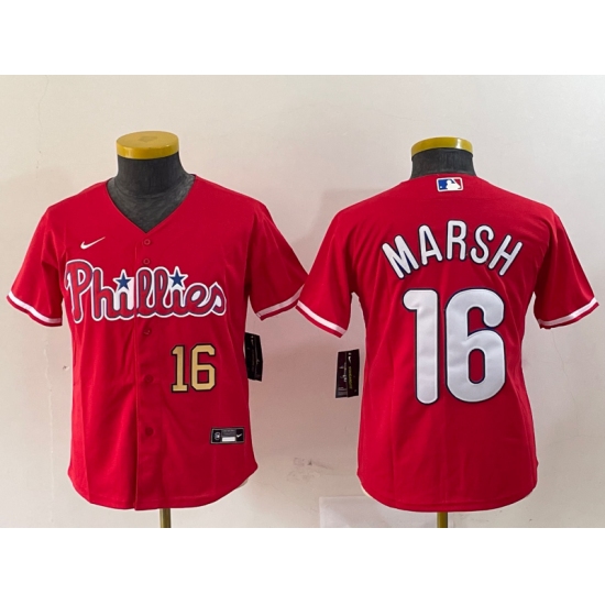 >Youth Philadelphia Phillies #16 Brandon Marsh Red Stitched Cool Base Jerseys