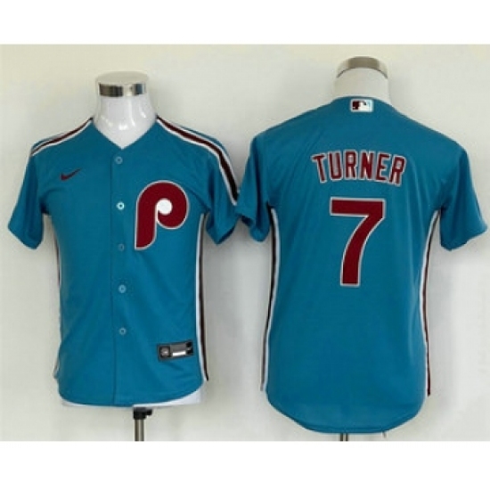 Youth Philadelphia Phillies #7 Trea Turner Blue Stitched MLB Cool Base Nike Jersey