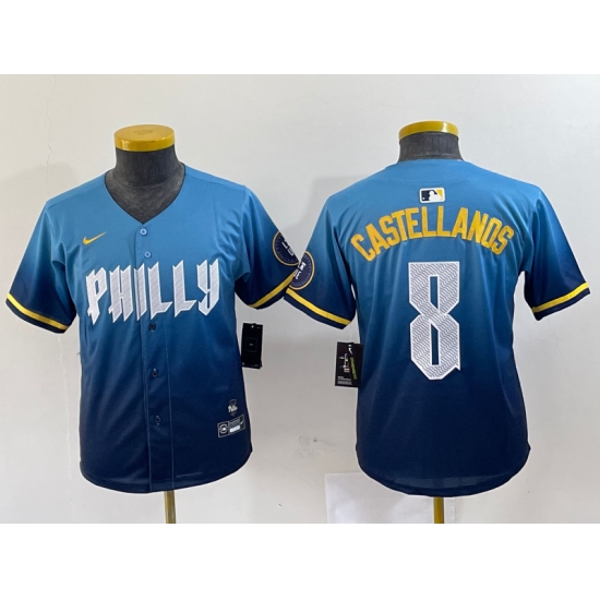 Youth Philadelphia Phillies #8 Nick Castellanos Blue 2024 City Connect Limited Stitched Jersey