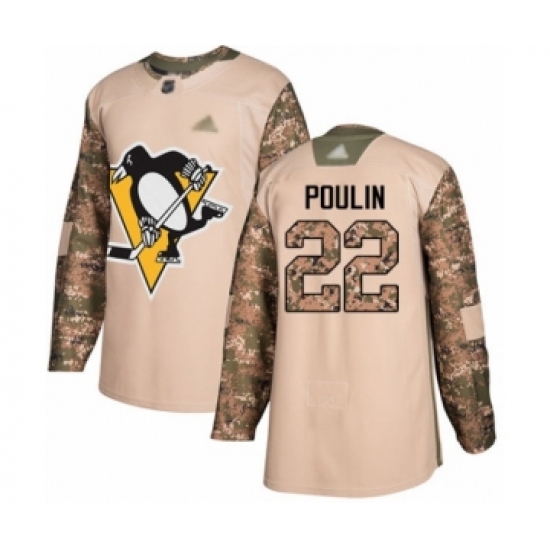 >Youth Pittsburgh Penguins #22 Samuel Poulin Authentic Camo Veterans Day Practice Hockey Jersey