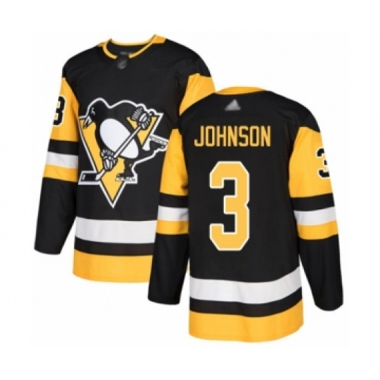 >Youth Pittsburgh Penguins #3 Jack Johnson Authentic Black Home Hockey Jersey