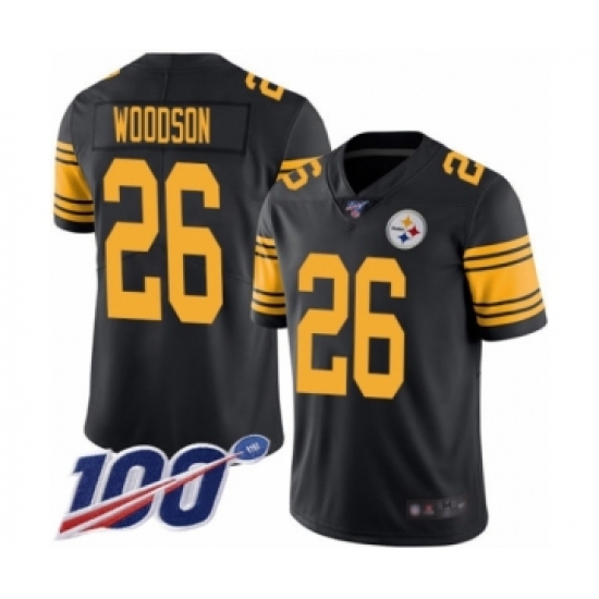 >Youth Pittsburgh Steelers #26 Rod Woodson Limited Black Rush Vapor Untouchable 100th Season Football Jersey