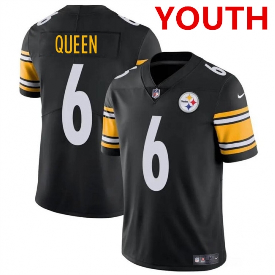 Youth Pittsburgh Steelers #6 Patrick Queen Black Vapor Untouchable Limited Football Stitched Jersey