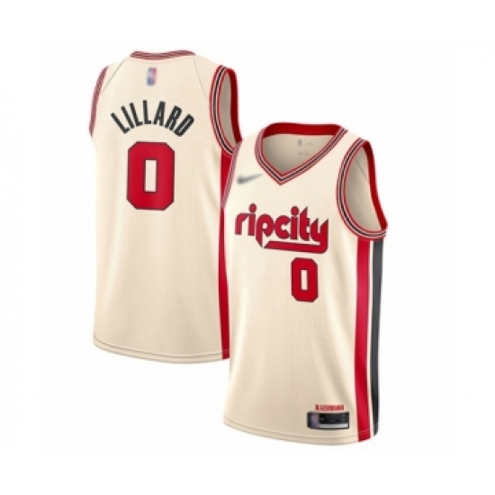 >Youth Portland Trail Blazers #0 Damian Lillard Swingman Cream Basketball Jersey - 2019 20 City Edition