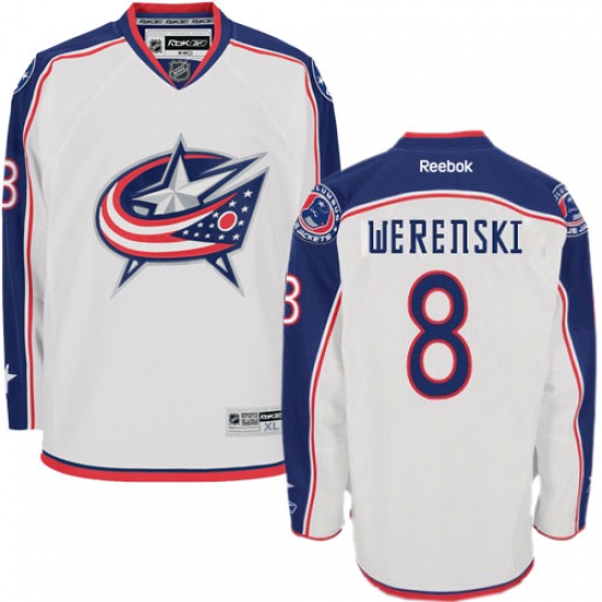 Home>NHL>Columbus Blue Jackets>Zach Werenski>Youth Reebok Columbus Blue Jackets #8 Zach Werenski Authentic White Away NHL Jersey