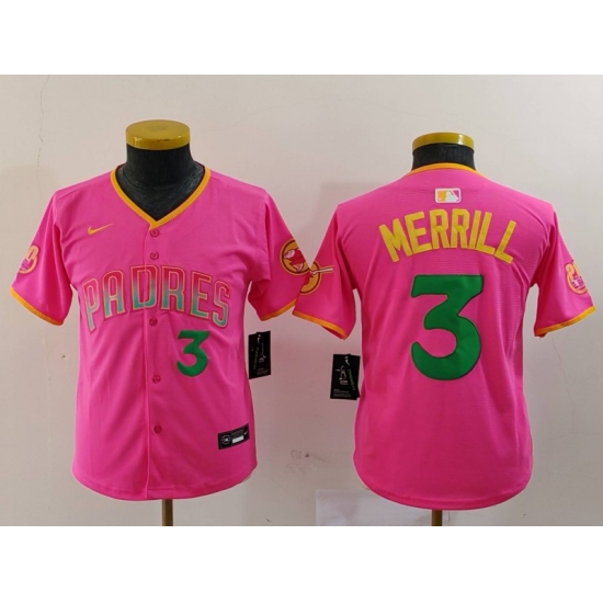 >Youth San Diego Padres #3 Jackson Merrill Number Pink Fashion Baseball Jersey