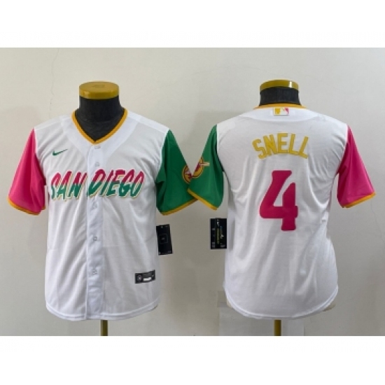 Youth San Diego Padres #4 Blake Snell White 2022 City Connect Cool Base Stitched Jersey
