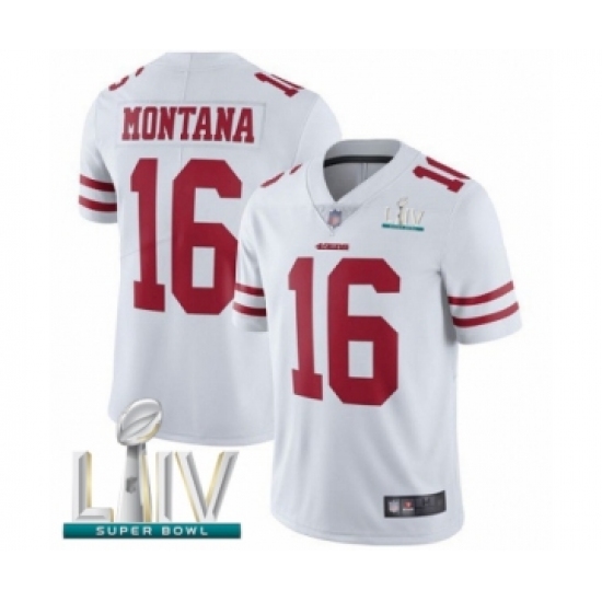 >Youth San Francisco 49ers #16 Joe Montana White Vapor Untouchable Limited Player Super Bowl LIV Bound Football Jersey