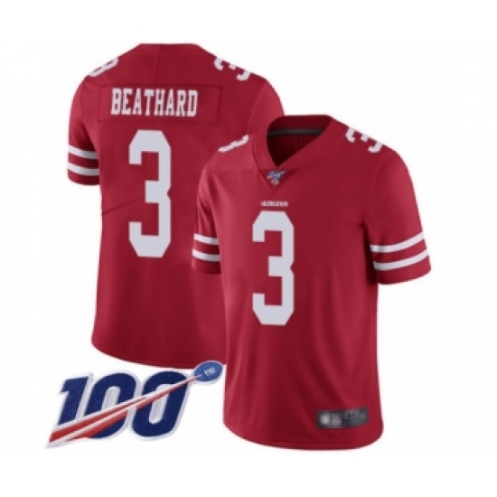 >Youth San Francisco 49ers #3 C. J. Beathard Red Team Color Vapor Untouchable Limited Player 100th Season Football Jersey