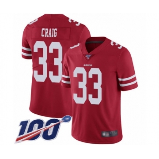 Youth San Francisco 49ers #33 Roger Craig Red Team Color Vapor Untouchable Limited Player 100th Season Football Jersey