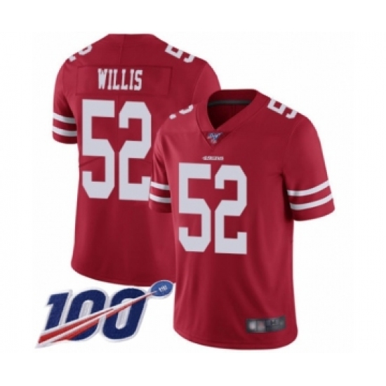 Men's San Francisco 49ers #52 Patrick Willis Red Team Color Vapor Untouchable Limited Player 100th Season Football Jersey