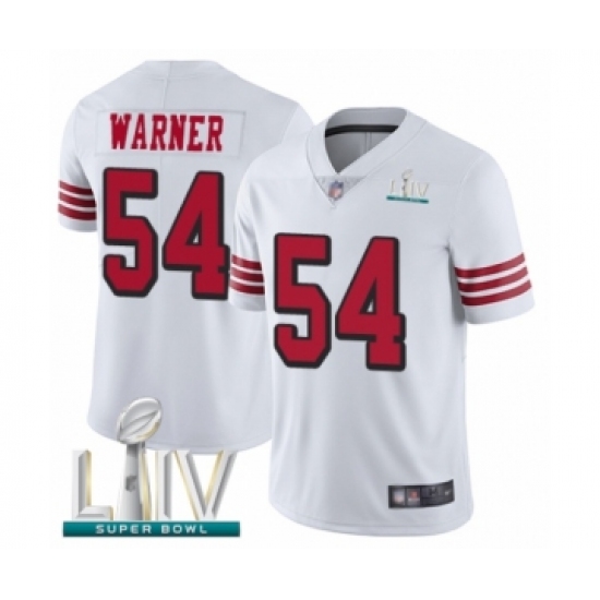 >Youth San Francisco 49ers #54 Fred Warner Limited White Rush Vapor Untouchable Super Bowl LIV Bound Football Jersey