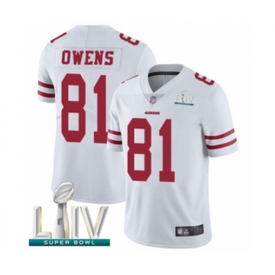 >Youth San Francisco 49ers #81 Terrell Owens White Vapor Untouchable Limited Player Super Bowl LIV Bound Football Jersey