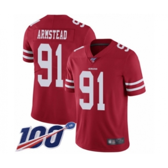 >Youth San Francisco 49ers #91 Arik Armstead Red Team Color Vapor Untouchable Limited Player 100th Season Football Jersey
