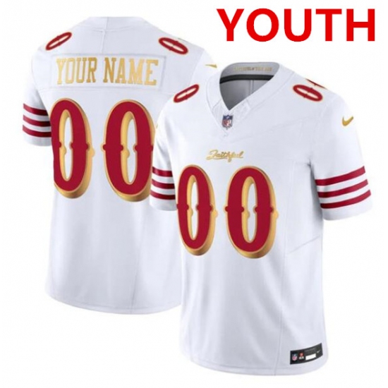 Youth San Francisco 49ers ACTIVE PLAYER Custom White Gold 2025 F.U.S.E. “Rivalries” Vapor Limited Football Stitched Jersey