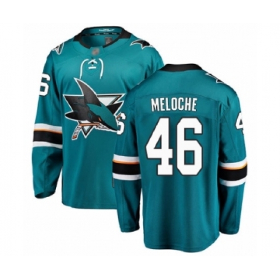 Men's San Jose Sharks #46 Nicolas Meloche Fanatics Branded Teal Green Home Breakaway Hockey Jersey