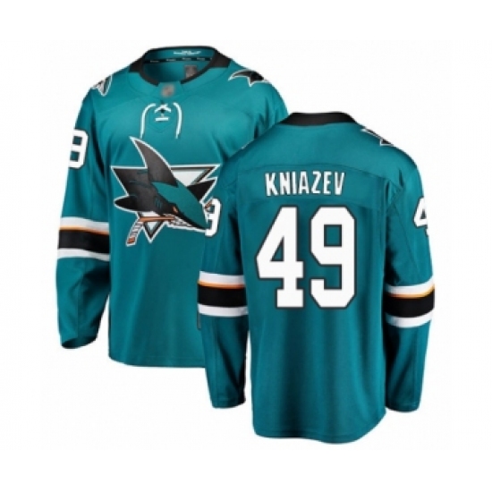 Men's San Jose Sharks #49 Artemi Kniazev Fanatics Branded Teal Green Home Breakaway Hockey Jersey